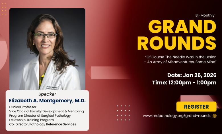 This Grand Rounds is designed for practicing pathologists, trainees, and allied professionals seeking to sharpen diagnostic reasoning and gain insight from complex, case-based examples. Attendees will benefit from Dr. Montgomery’s extensive experience, clear teaching style, and emphasis on lessons that translate directly to everyday practice.
